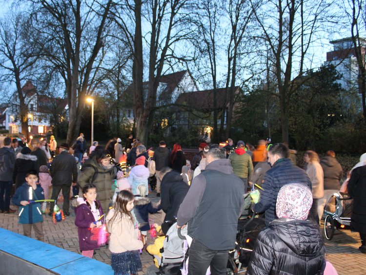 Zahlreiche Familien folgten der Einladung am 11. November 2025 zu unserem Martinsfest. Nach der Begrüßung durch Kitaleiterin Pia Heinz eröffnete das Martinsspiel auf der Bühne im Bürgerpark unsere Veranstaltung. Alle Kinder verfolgten gespannt die Legende um die Teilung des roten Mantels, die in einem Theaterstück von unseren Erzieher*innen dargestellt wurde. Anschließend wurden gemeinsam Laternenlieder gesungen und dabei von Gitarrenklängen stimmungsvoll begleitet. Nach dem Teilen der Martinsbrötchen machten sich die Familien auf und zogen in einem bunten Umzug durch den Büprgerpark, wo die leuchtenden Laternen besonders schön zur Geltung kamen. Zurück in der Kindertagestätte klang der Abend in geselliger Runde bei Würstchen und heißem Punsch aus. Das Martinsfest bot allen Beteiligten eine schöne Gelegenheit, miteinander ins Gespräch zu kommen und den Gedanken des Teilens und der Nächstenliebe lebendig werden zu lassen.