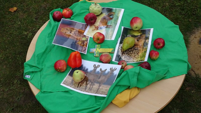 Die Krippenkinder unserer Himbeergruppe feierten gemeinsam mit den Krippenkindern aus der Kita Amtsstraße ein fröhliches Erntedankfest. Bei einer kleinen Andacht unter dem Motto „Auch die Tiere sagen Danke“ sangen die Kinder Lieder, sprachen ein Gebet und erinnerten sich daran, wofür wir dankbar sein können. Anschließend durften alle gemeinsam genießen: Es gab selbstgemachte Apfelwaffeln, leckere Apfel-Müsliriegel und frisch gepressten Apfelsaft.