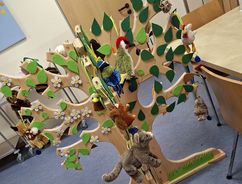 Ende September stand in unserer Kita ein Erzählbaum, der uns Vieles von der Streuobstwiese erzählt hat. Diesen Baum durften wir uns zwei Wochen vom Verein der Streuobstwiesen Wunstorf ausleihen und nutzen — das hat allen Kindern viel Freude bereitet. Die Kinder lernten viel über Bäume, Früchte und Tiere und konnten sich gut auf das Erntedankfest vorbereiten.