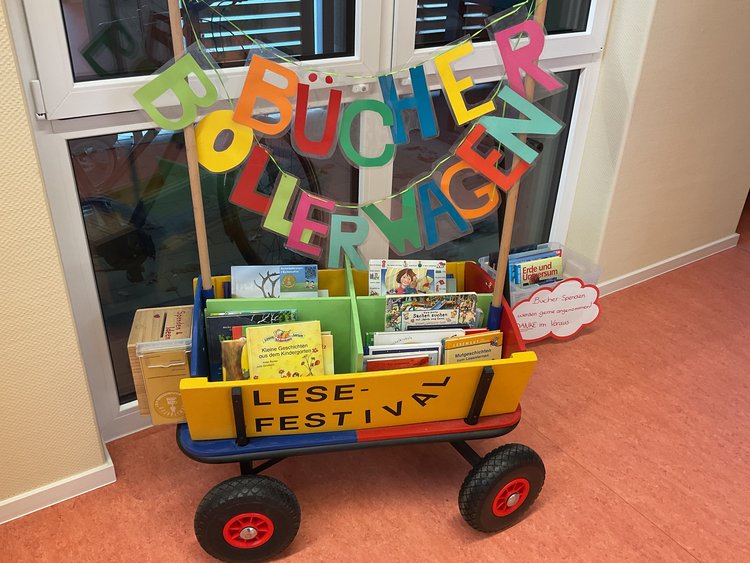 Im November und Dezember 2025 stand für vier Wochen der Bücherbollerwagen in unserer Kita. Der Bücherbollerwagen ist ein Projekt des Wunstorfer Lese- und Kulturfestivals e.V., um Kinder direkt mit Büchern in Kontakt zu bringen. Er ist gefüllt mit gespendeten Büchern, die von Kindern und Eltern nach Hause ausgeliehen werden dürfen. Unsere Kinder nutzten rege das Angebot und stöberten interessiert durch die Bücher. Vielen Dank an den Verein Lese- und Kulturfestival für das tolle Angebot!